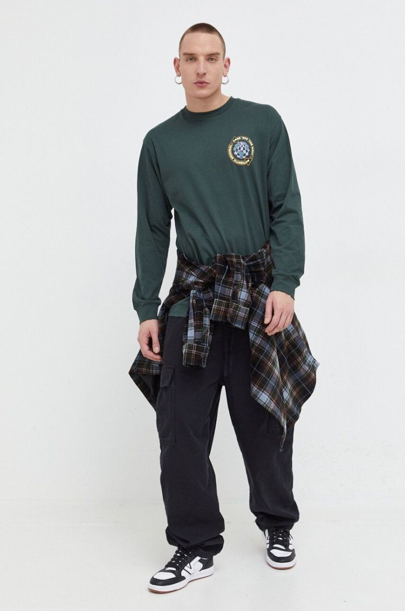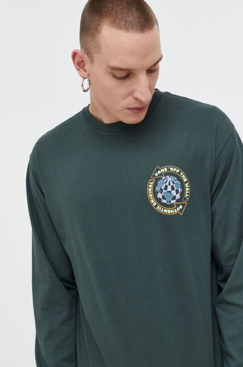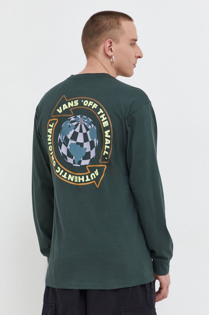 Бавовняний лонгслів Vans колір зелений з принтом (3681011)