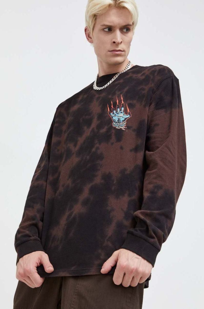 Бавовняний лонгслів Volcom x MAX SHERMAN колір коричневий візерунок