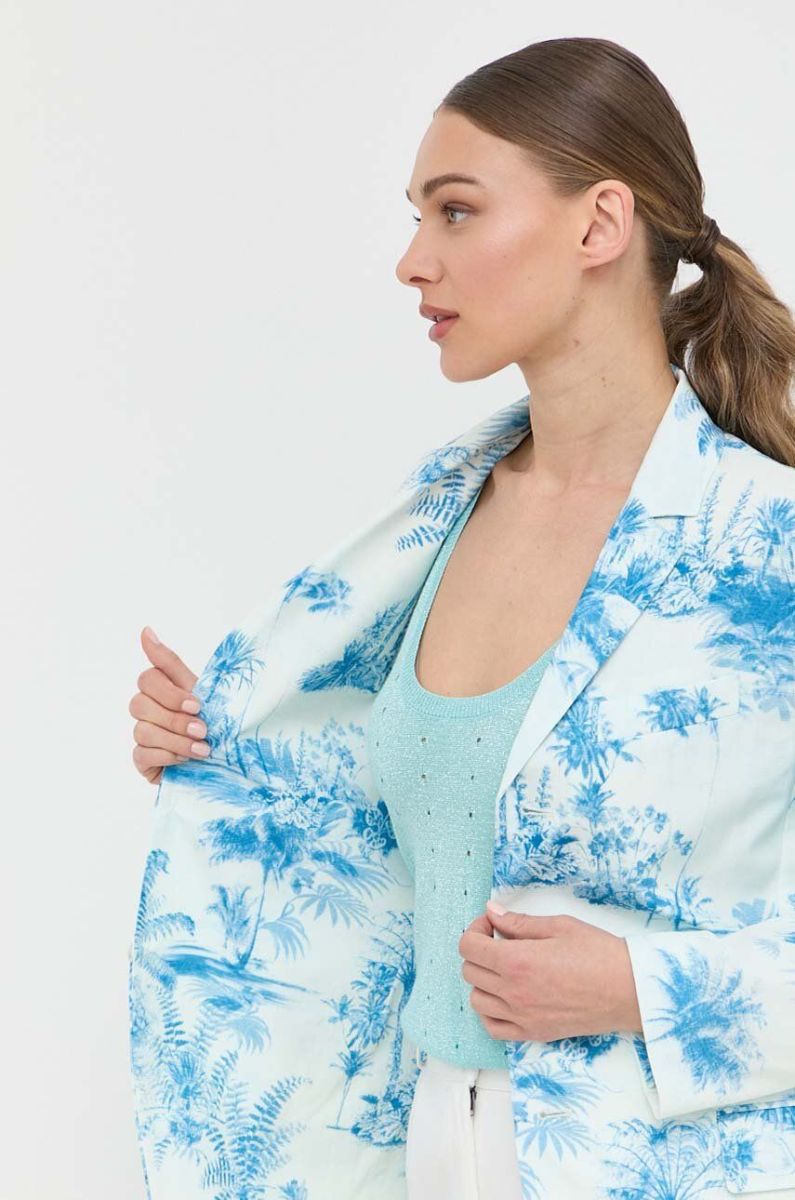 Бавовняний піджак Red Valentino однобортний візерунок колір блакитний