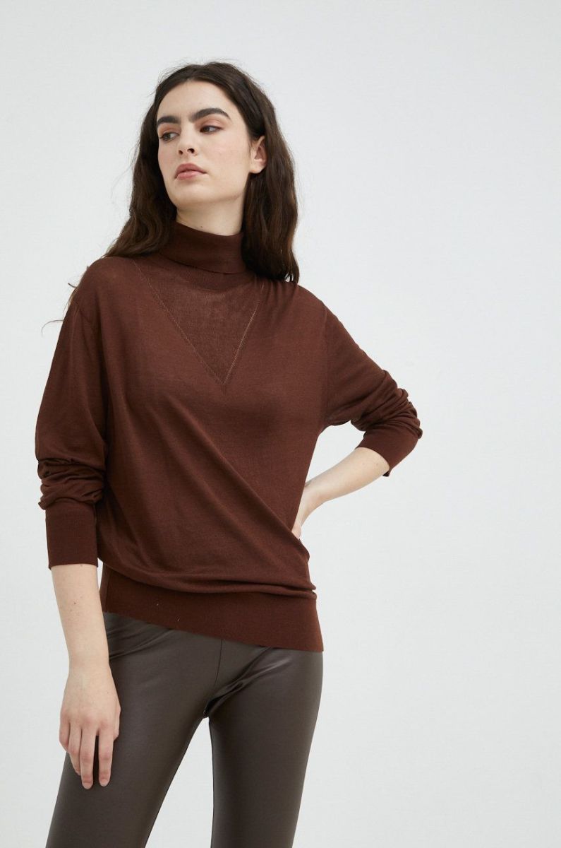 Бавовняний светер G-Star Raw жіночий колір коричневий легкий гольф