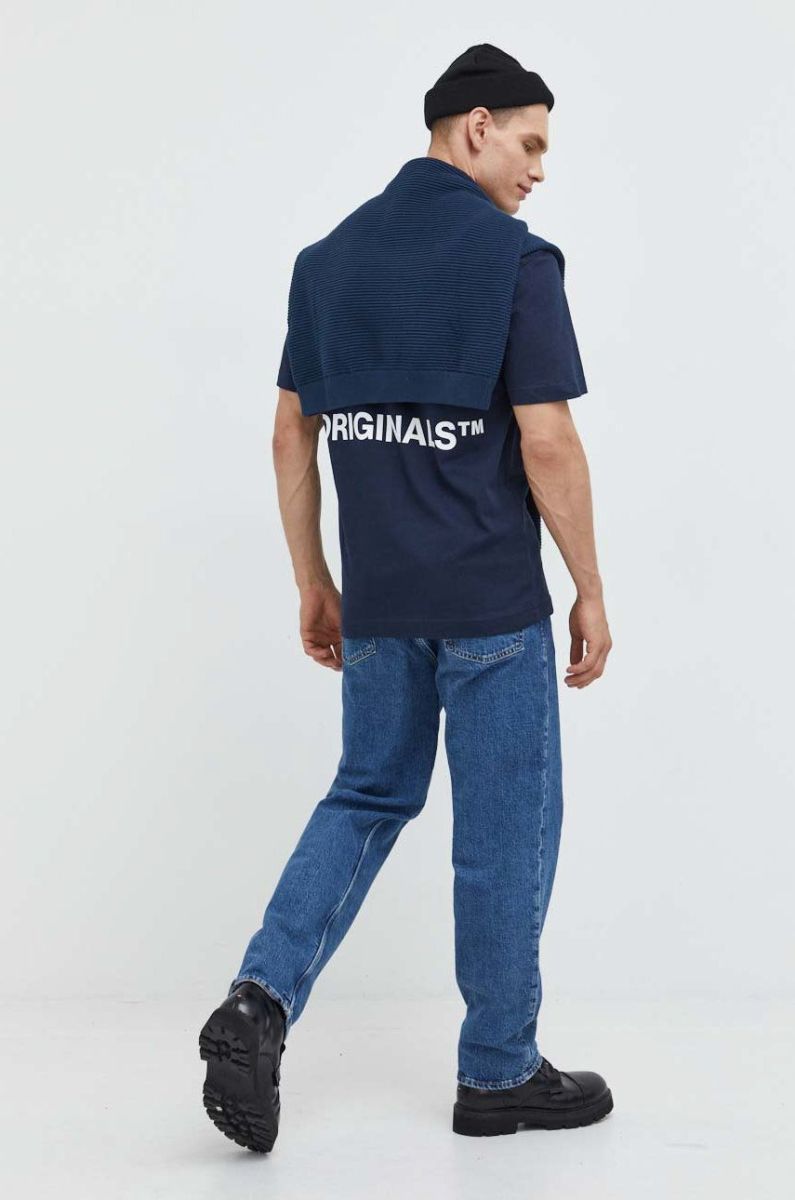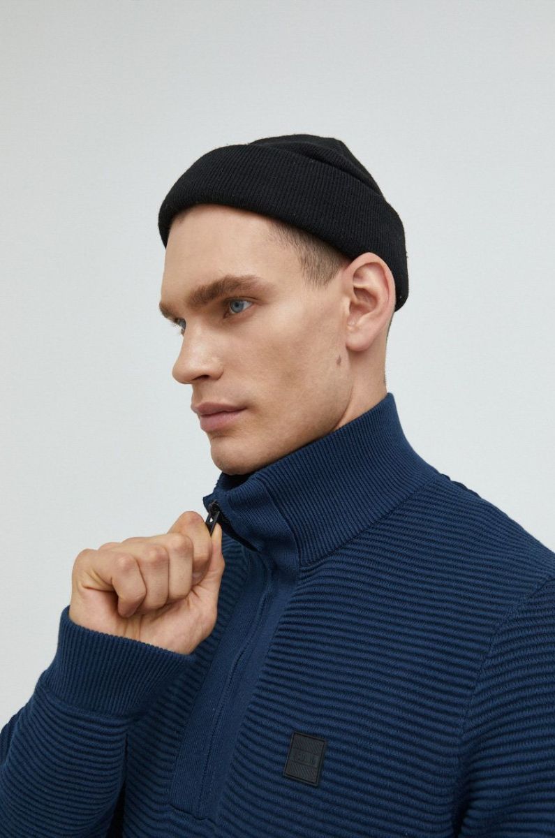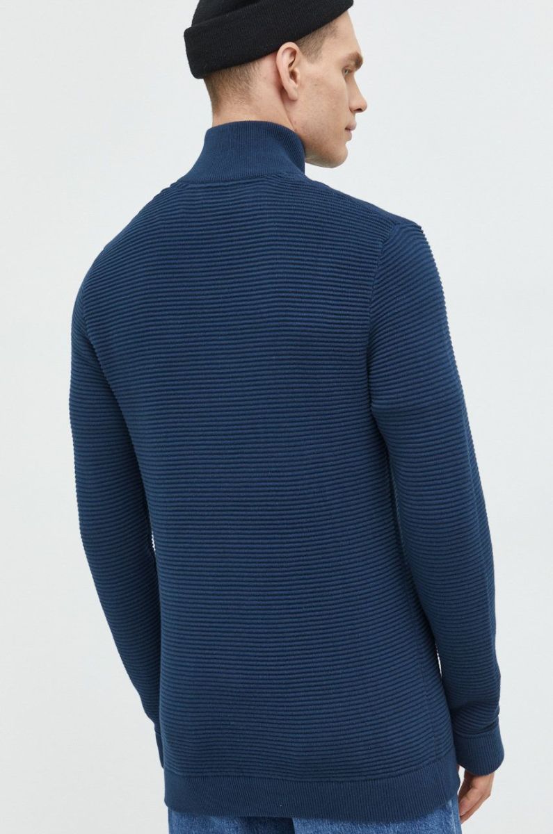 Бавовняний светер Solid чоловічий колір синій півгольф