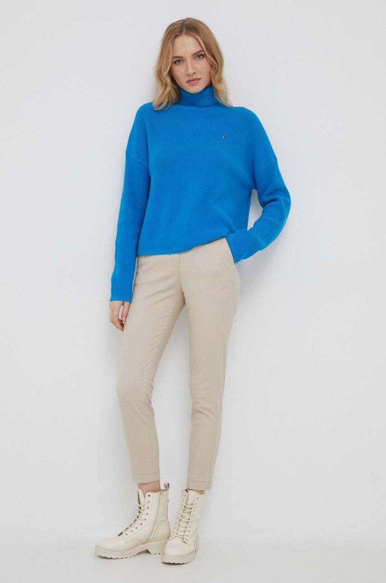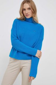 Бавовняний светр Tommy Hilfiger гольф колір блакитний
