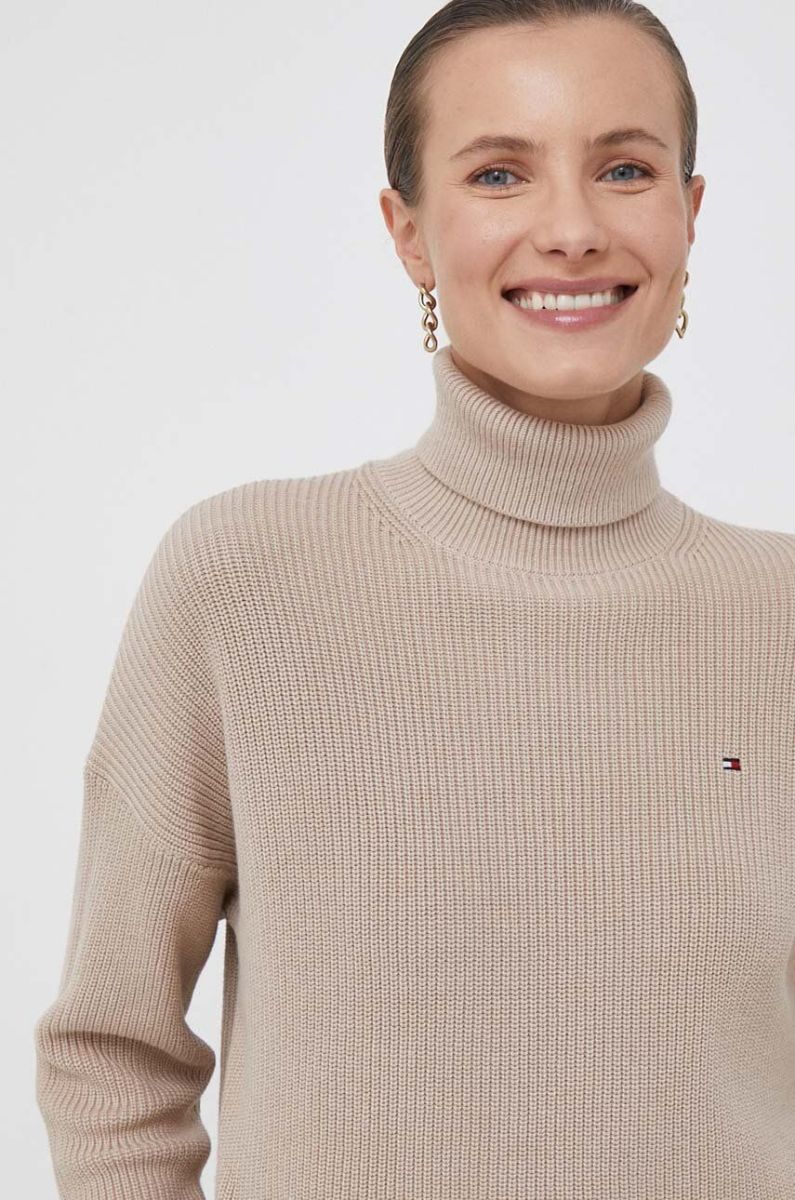 Бавовняний светр Tommy Hilfiger колір бежевий гольф (3538692)