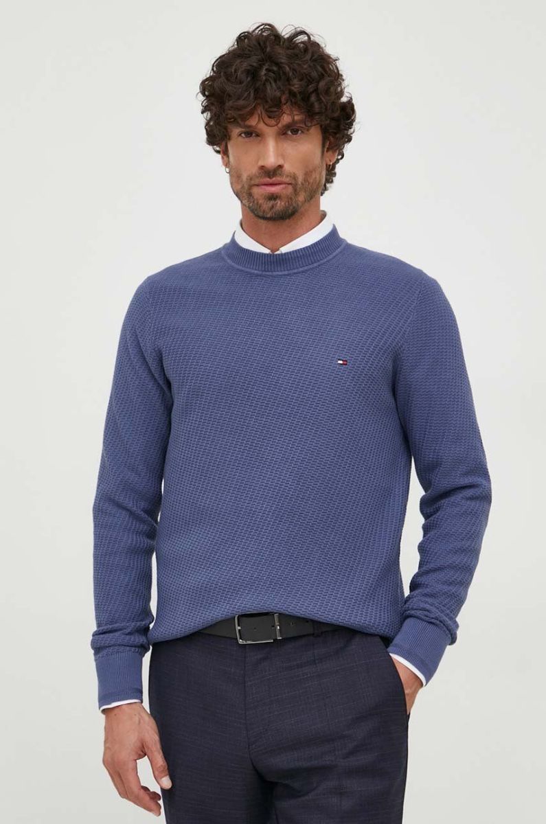 Бавовняний светр Tommy Hilfiger легкий колір блакитний
