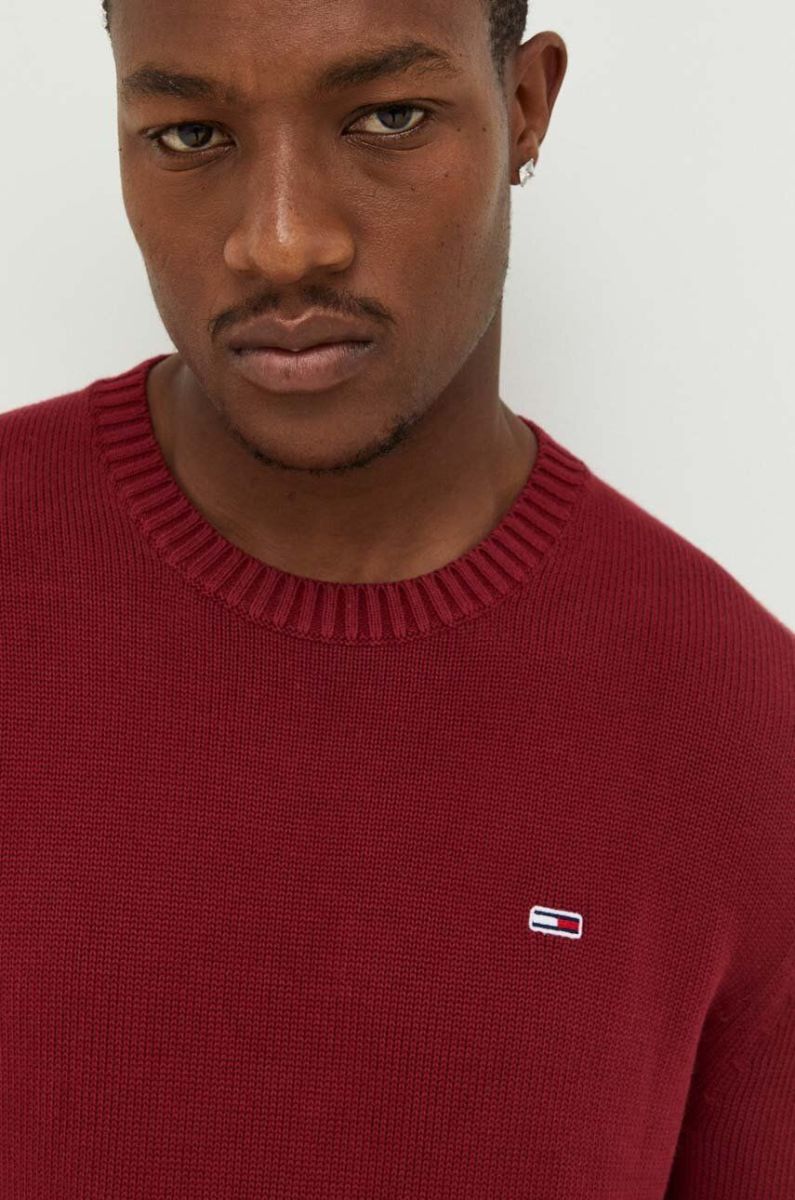 Бавовняний светр Tommy Jeans колір бордовий (3416728)