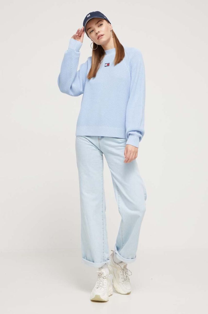Бавовняний светр Tommy Jeans півгольф колір блакитний