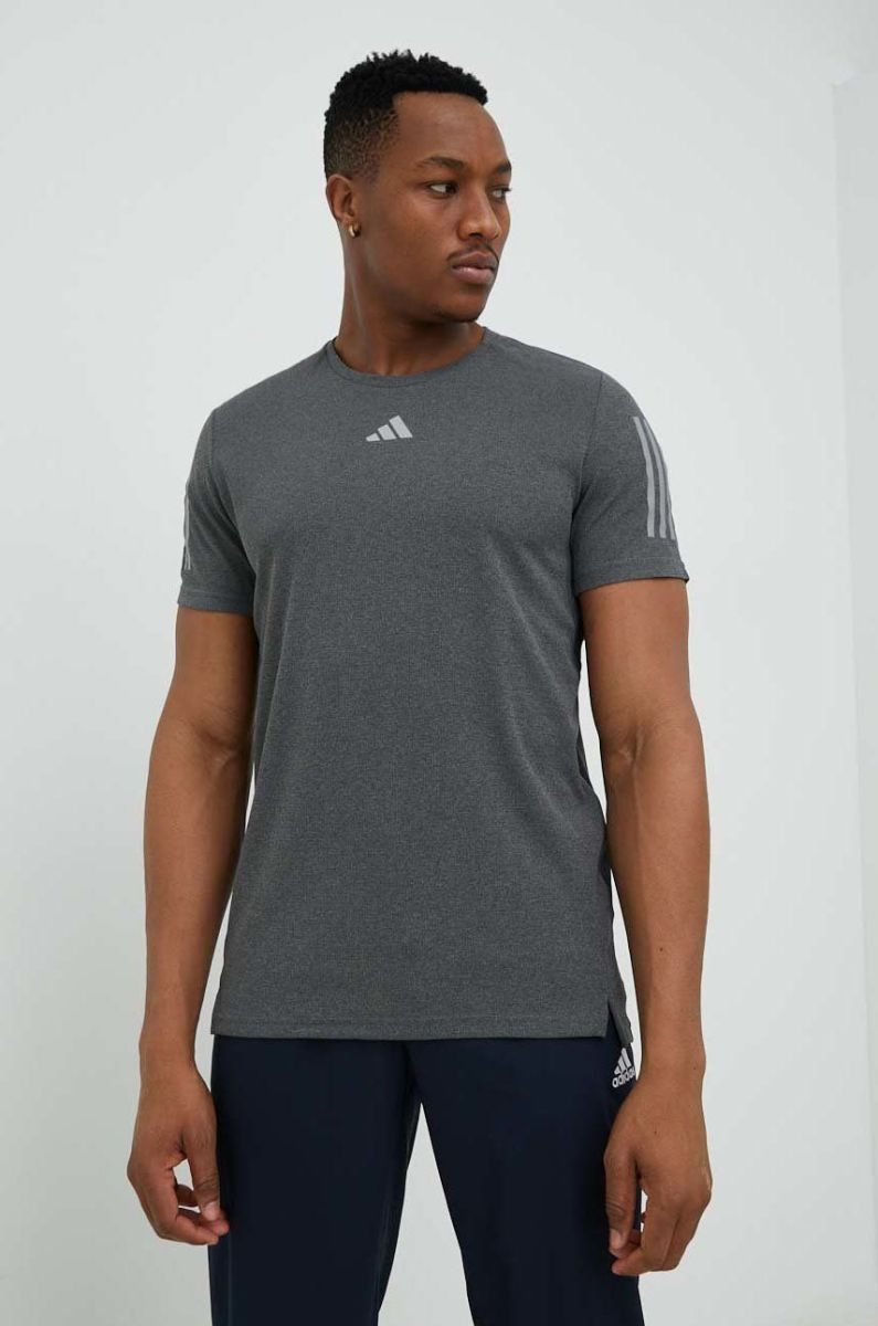Бігова футболка adidas Performance Own the Run колір сірий з принтом
