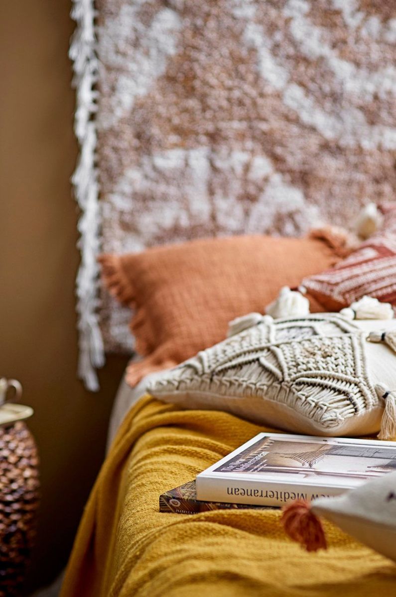 - Подушка в стилі бохо з декоративними китицями.