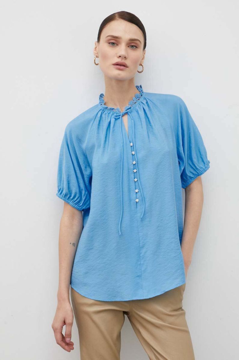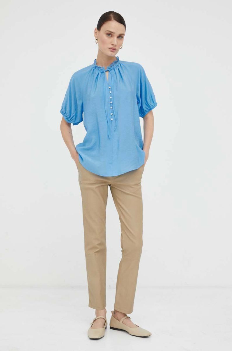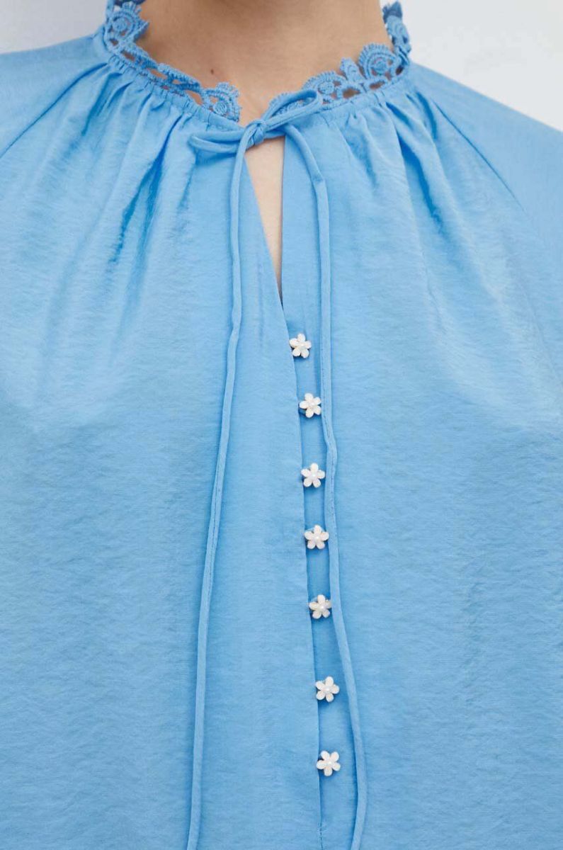 Блузка Bruuns Bazaar жіноча однотонна колір блакитний