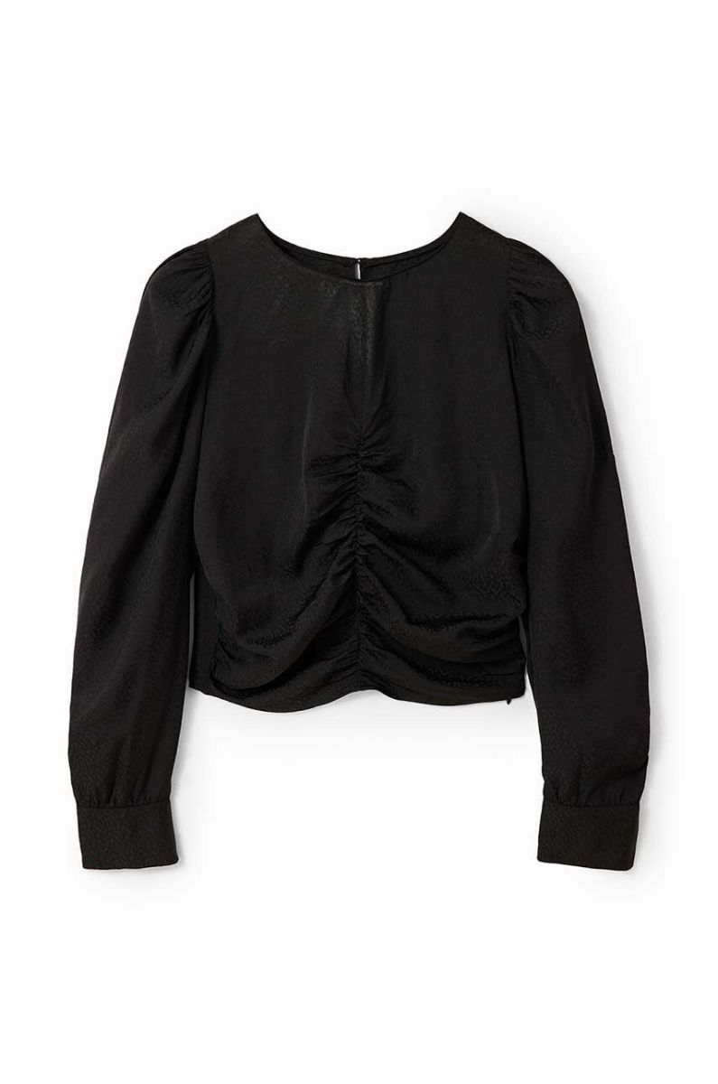 Блузка Desigual 23WWBW32 WOMAN WOVEN BLOUSE LONG SLEEVE жіноча колір чорний однотонна