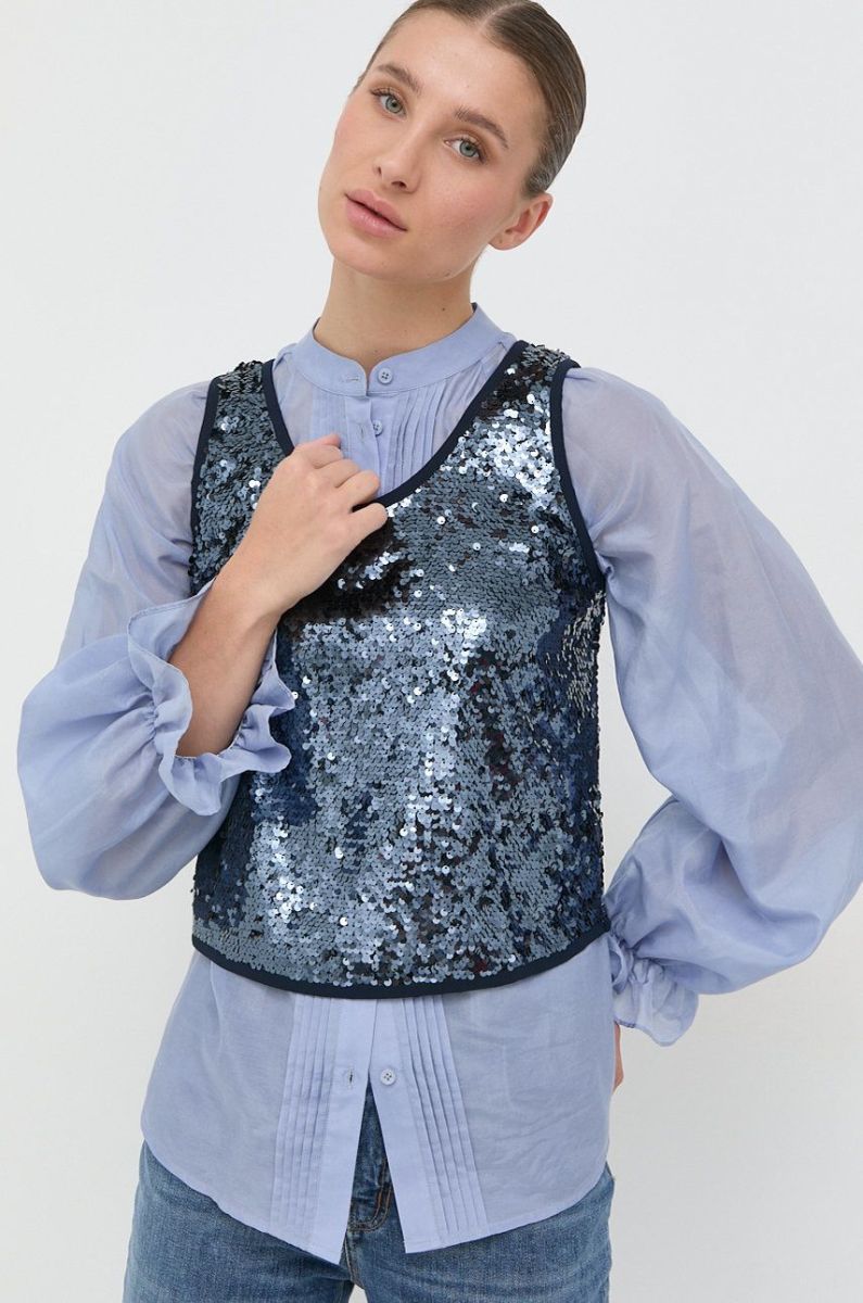 Блузка із колекції MAX&Co. Модель виготовлена із матеріалу з паєтками. Має круглий виріз.