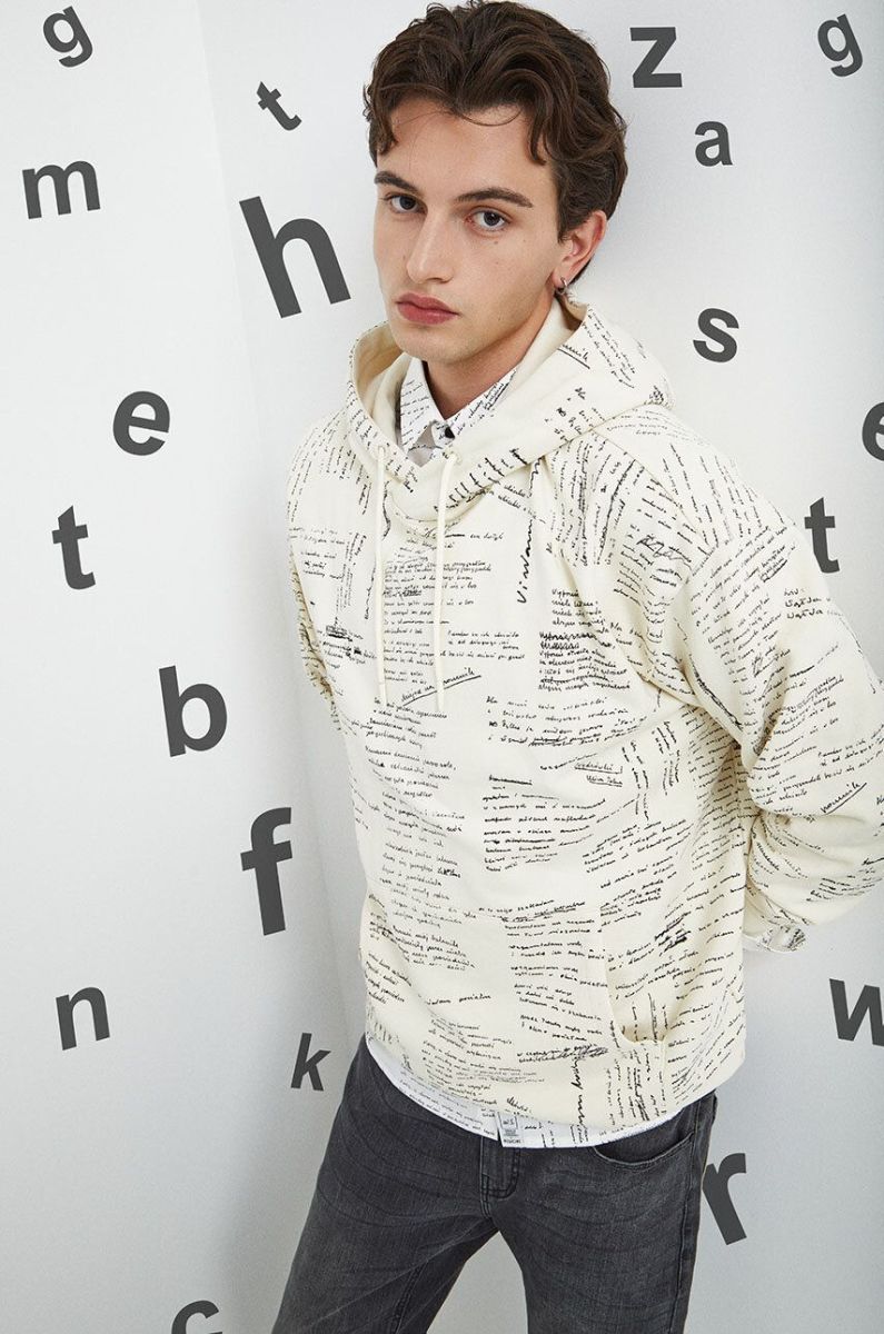 Блузка Medicine чоловіча колір білий з капюшоном візерунок