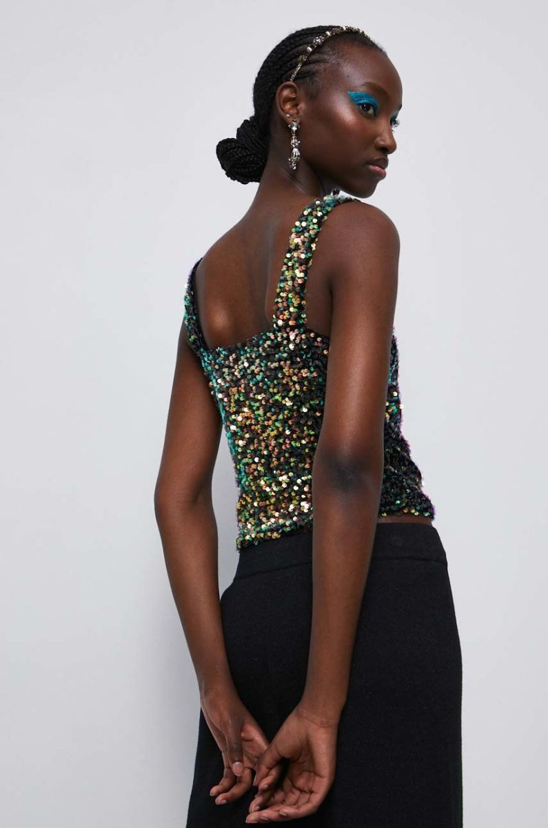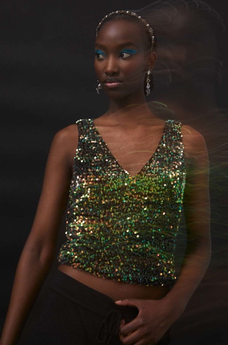 - Модель із матеріалу з паєтками.
