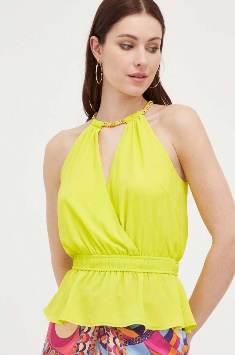 Блузка Morgan жіноча колір зелений однотонна (3229568)