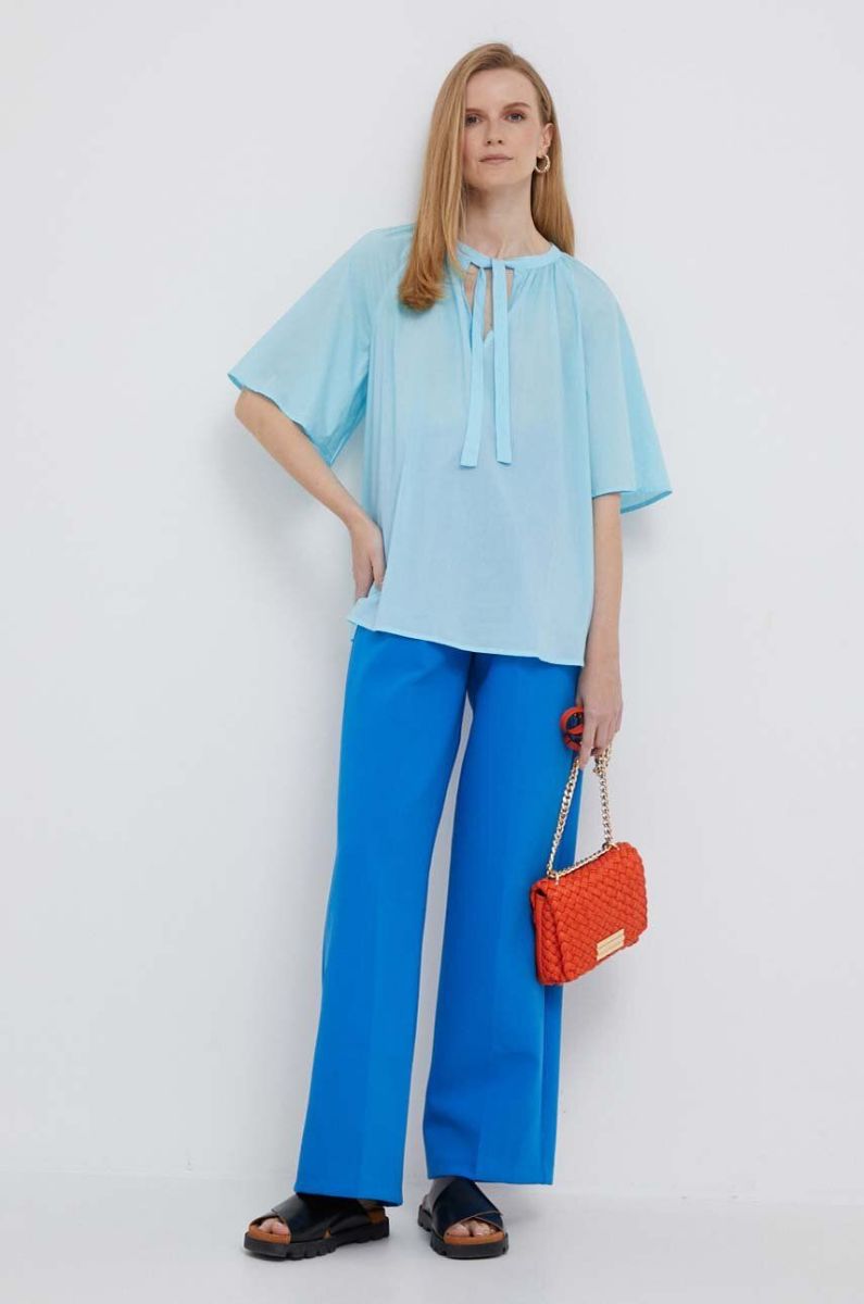 Блузка United Colors of Benetton жіноча однотонна колір блакитний