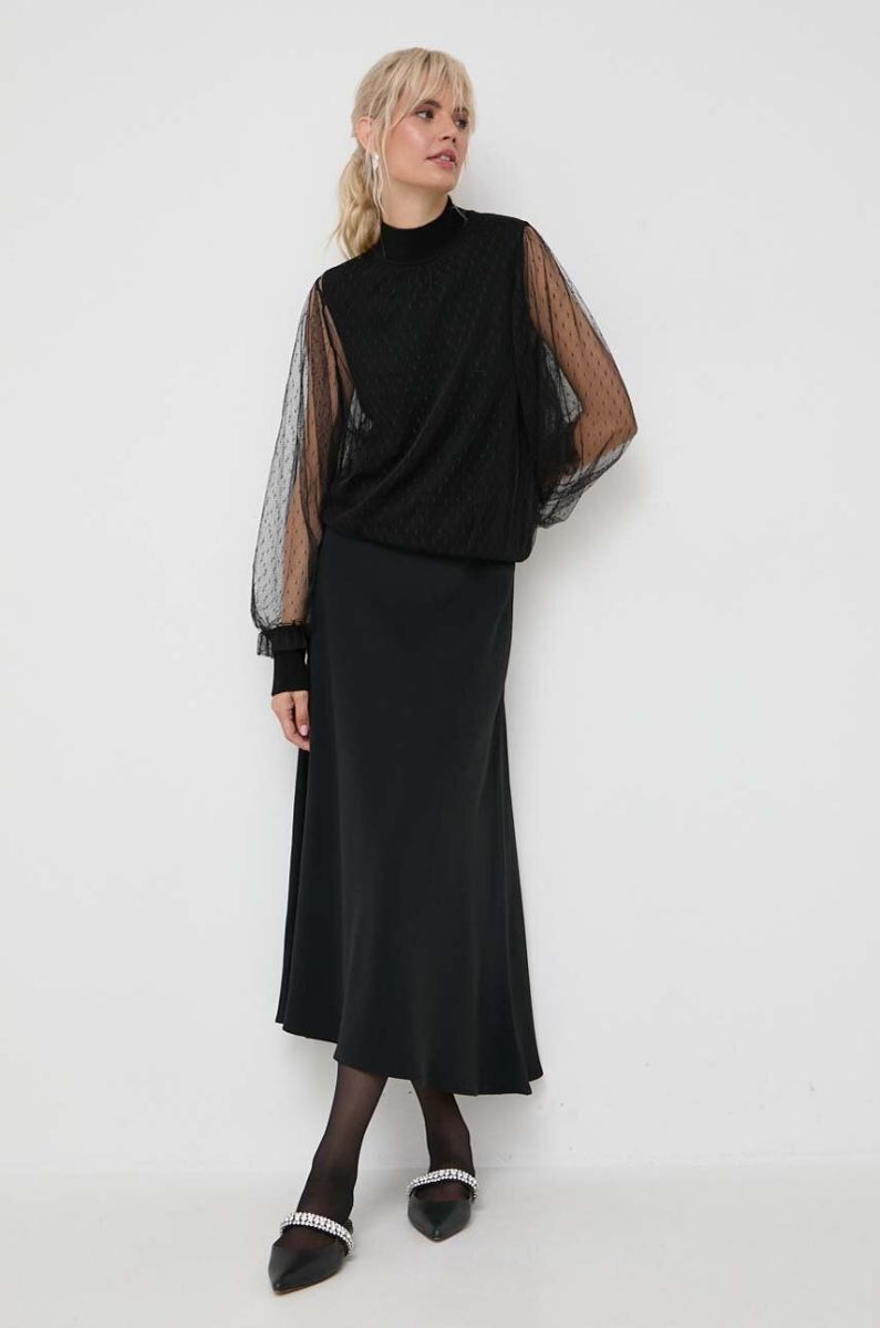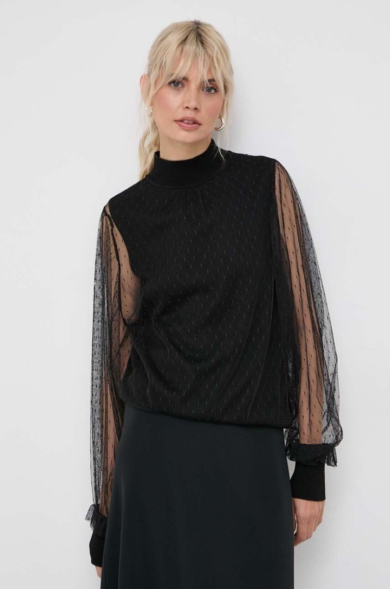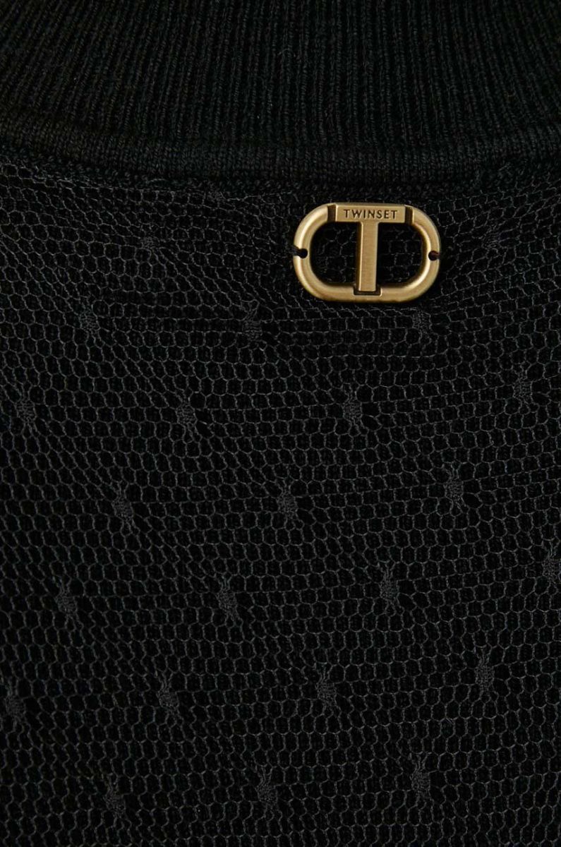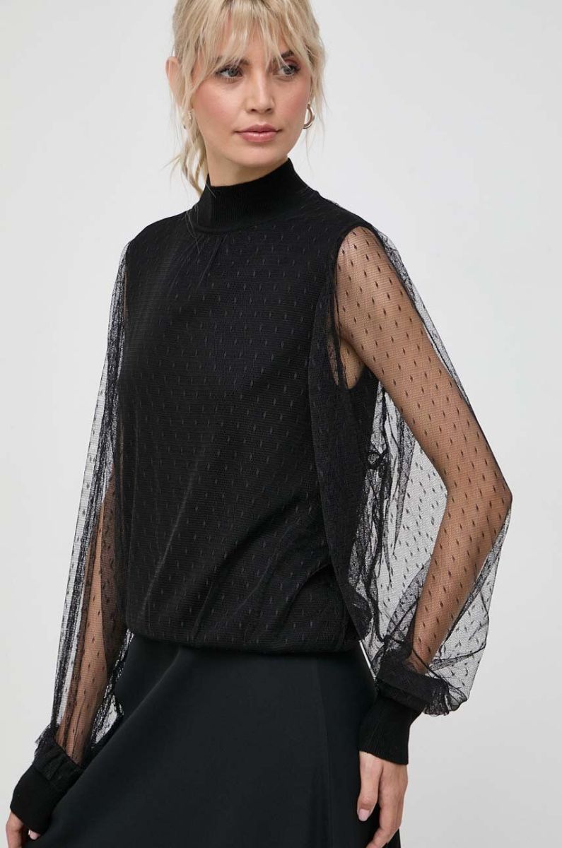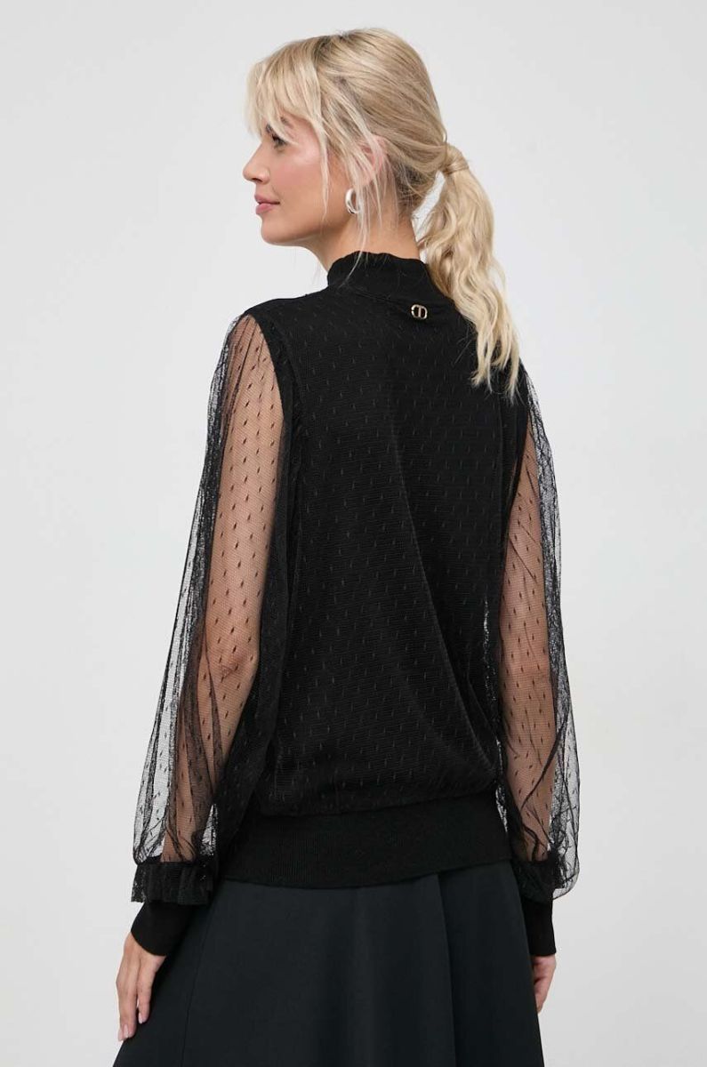 Блузка з домішкою вовни Twinset колір чорний однотонна (3620997)