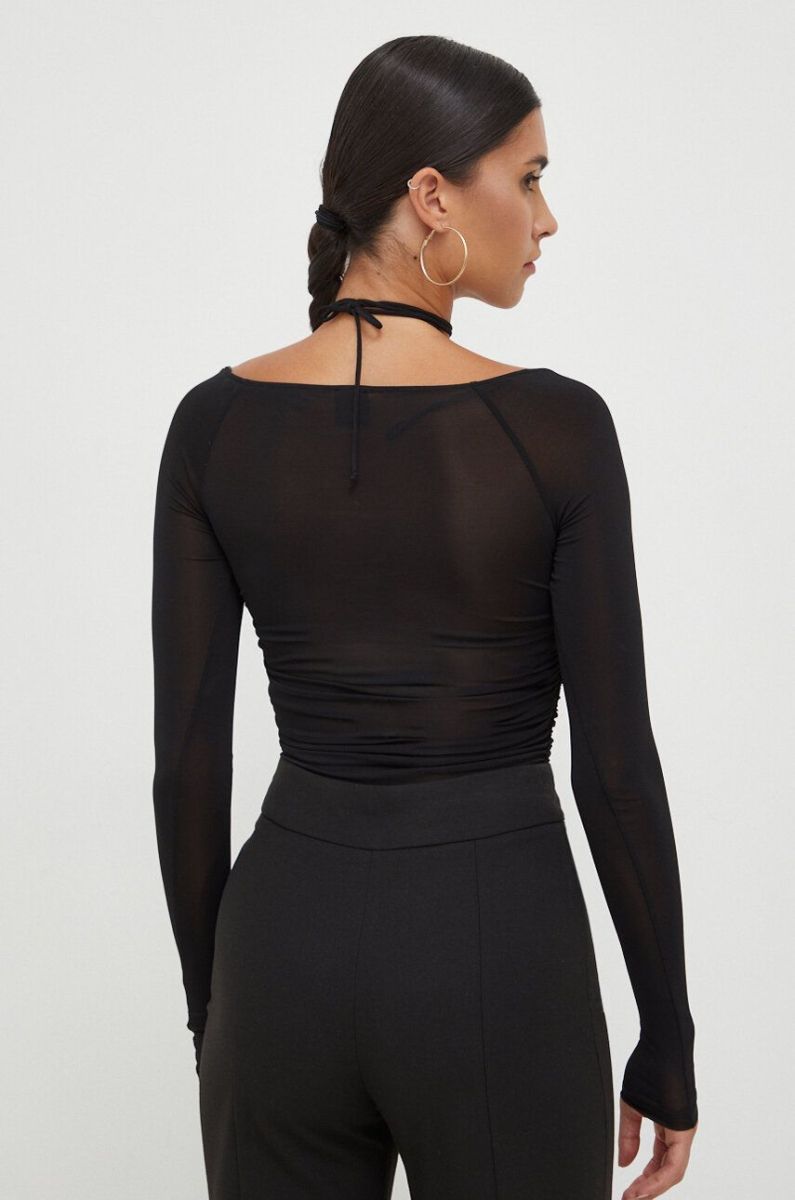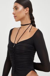 Боді z kolekcji Pinko виконане із гладкого матеріалу. Матеріал з високим вмістом віскози комфортний, приємний на дотик і ідеально підходить для теплої пори року.