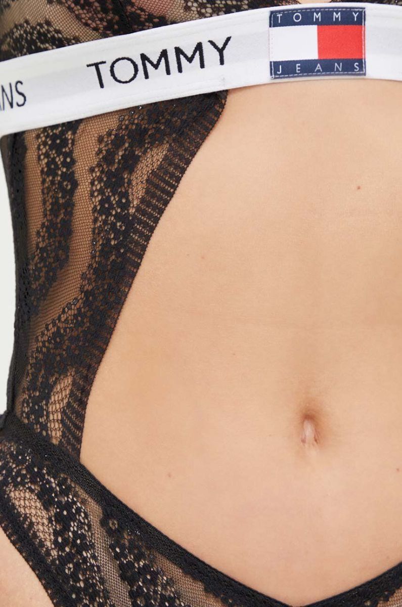 Боді Tommy Jeans колір чорний мереживо однотонний