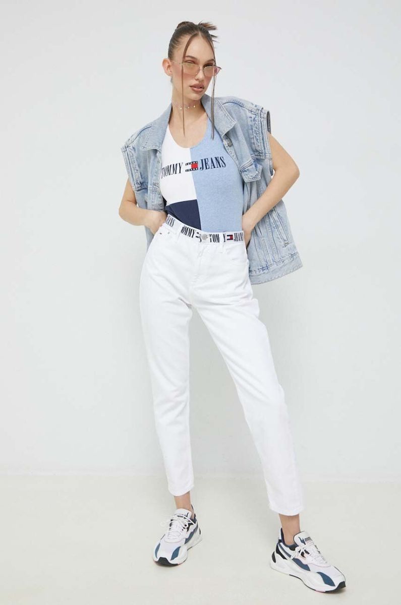 Боді із колекції Tommy Jeans. Модель виготовлена із трикотажу з аплікацією. Еластичний, підкреслюючий фігуру, матеріал.