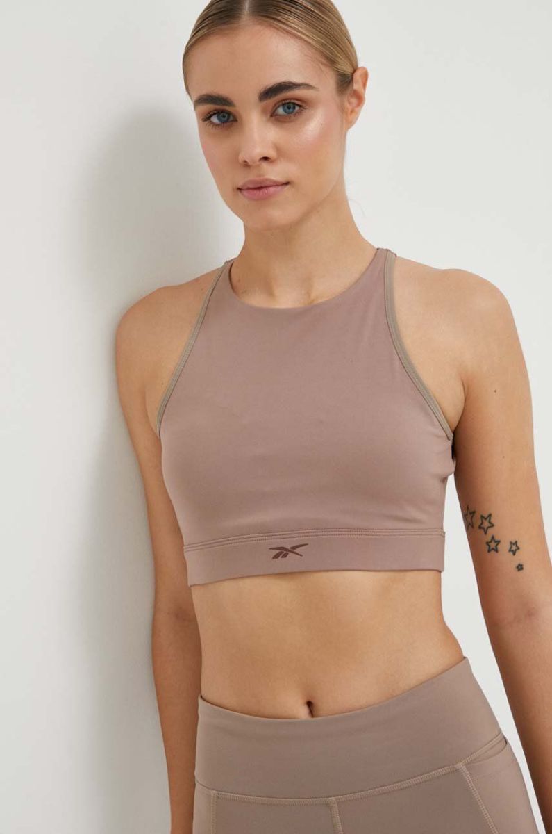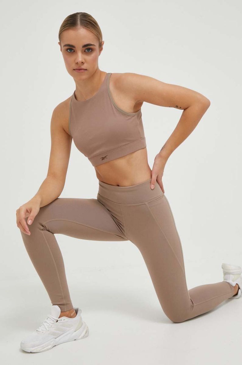 Бюстгальтер для йоги Reebok Long Line колір бежевий однотонний