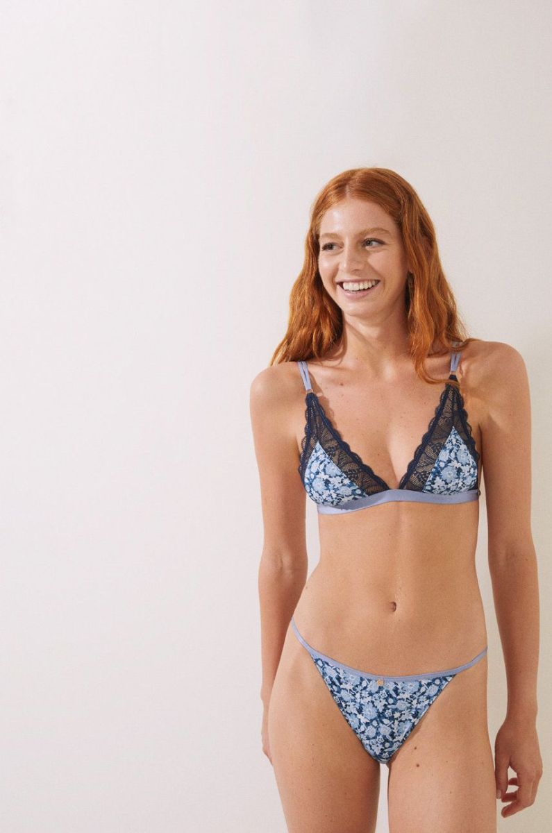 Бюстгальтер women'secret Baltic колір синій сатин візерунок