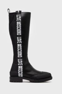 Чоботи Love Moschino жіночі колір чорний на плоскому ходу