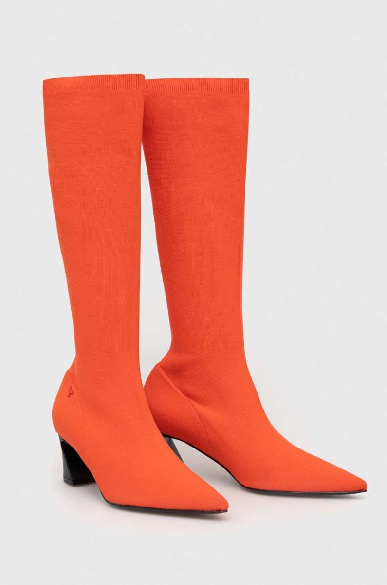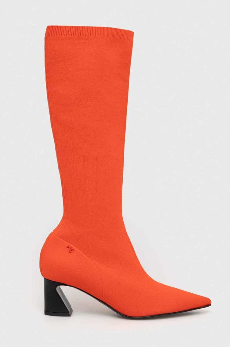 Чоботи Patrizia Pepe жіночі колір помаранчевий каблук блок 2Y0014 K156 R809