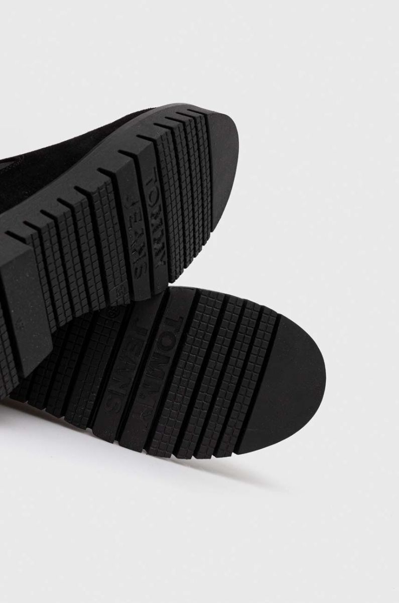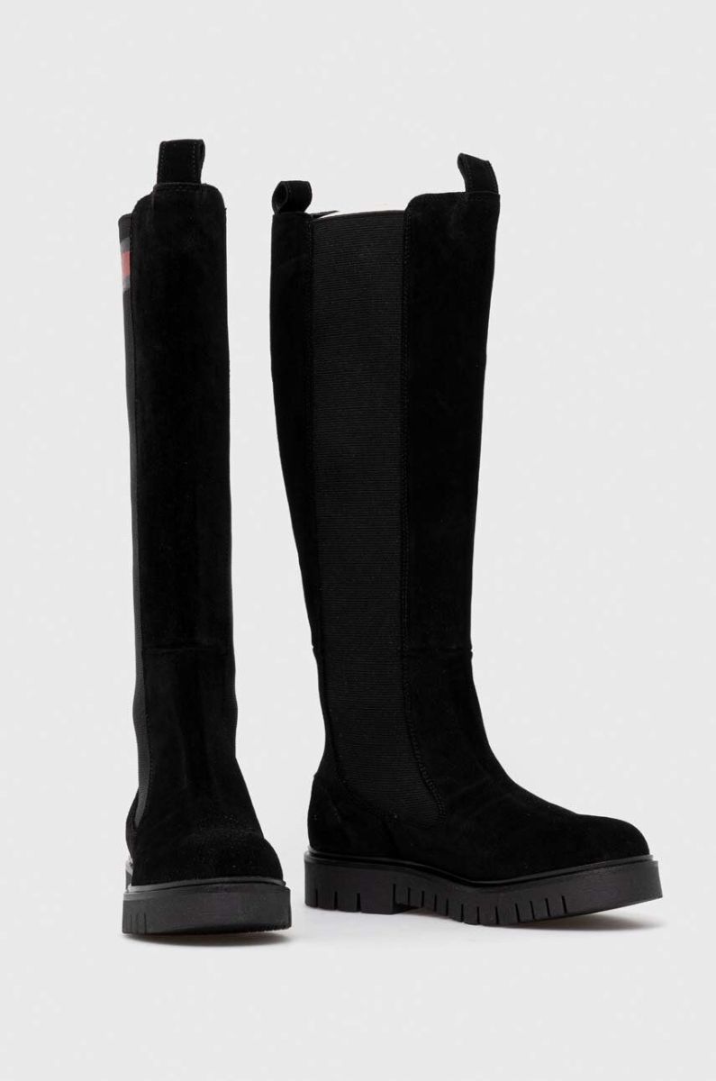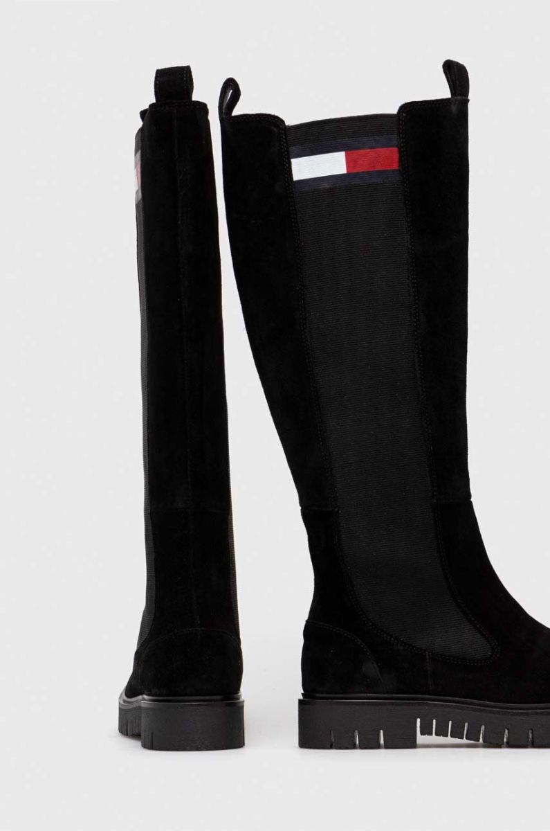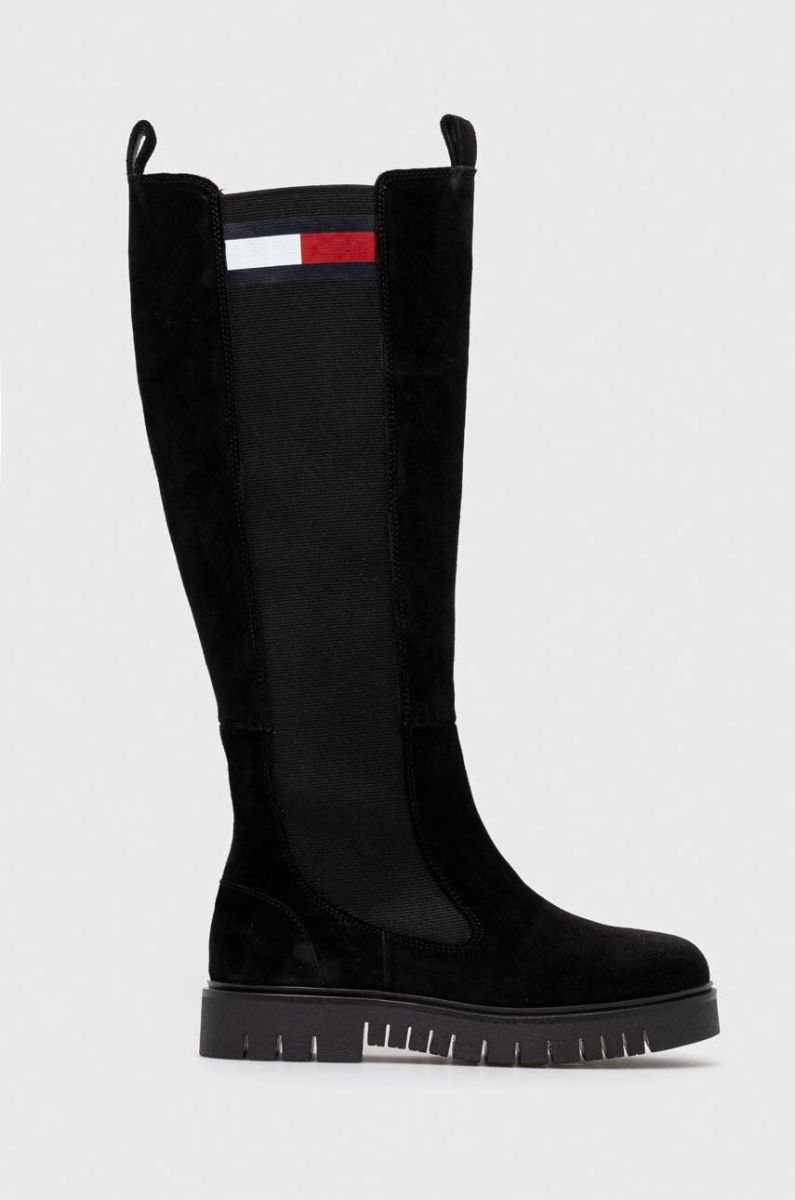 Чоботи Tommy Jeans TJW LONG SHAFT SUEDE BOOT жіночі колір чорний на плоскому ходу EN0EN02412