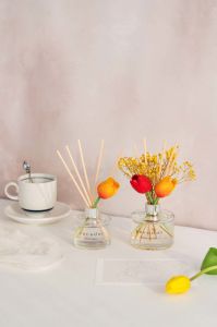 - У набір входить дифузор з олійкою, сушені квіти і 5 бамбукових паличок.