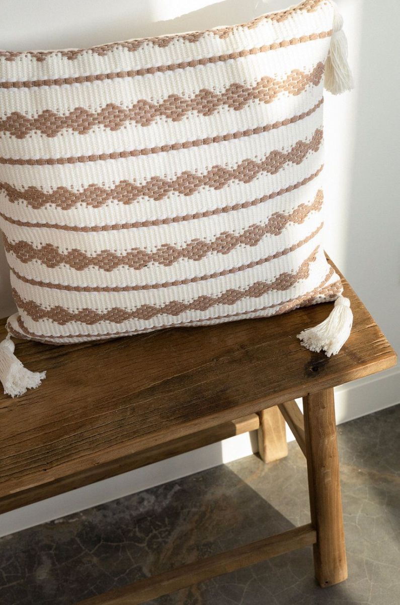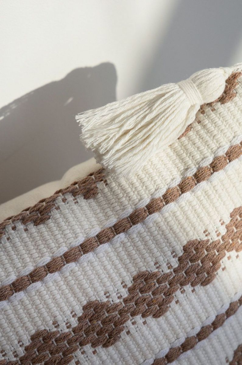 - Подушка в стилі бохо з декоративними китицями.
