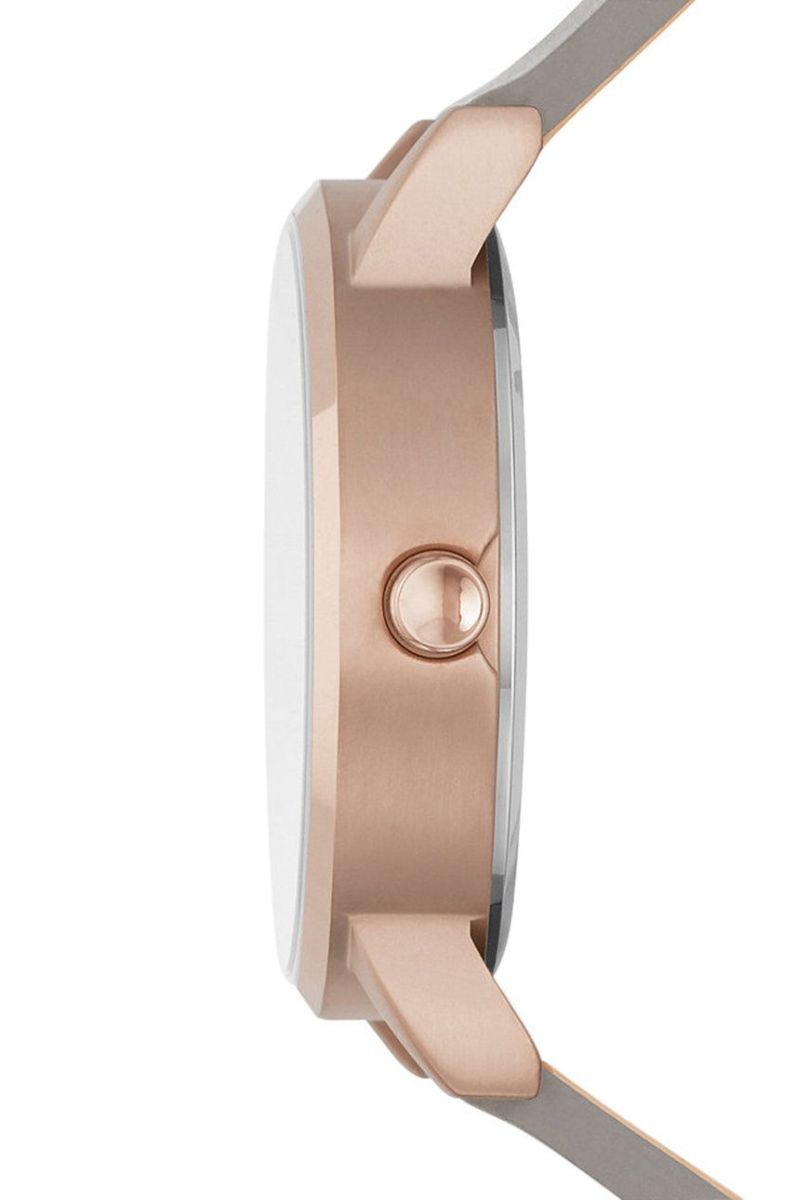 Годинник із колекції Dkny. Модель із круглою формою і шкіряним ремінцем.