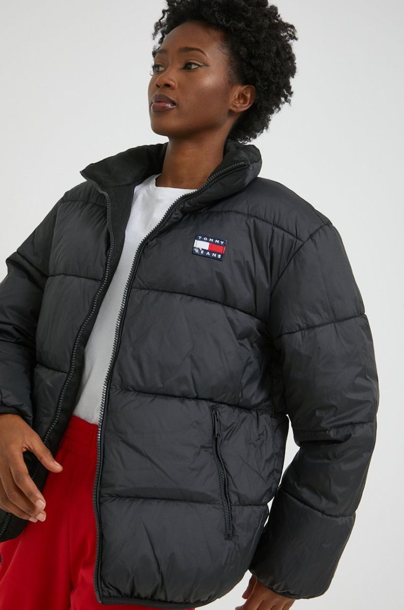 Двостороння куртка Tommy Jeans жіноча колір чорний перехідна