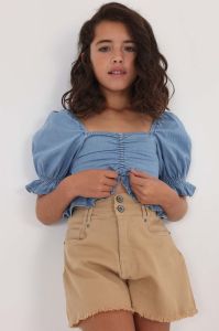 Дитяча бавовняна блузка Mayoral однотонна колір блакитний