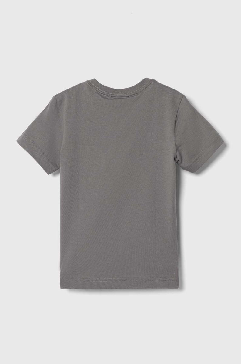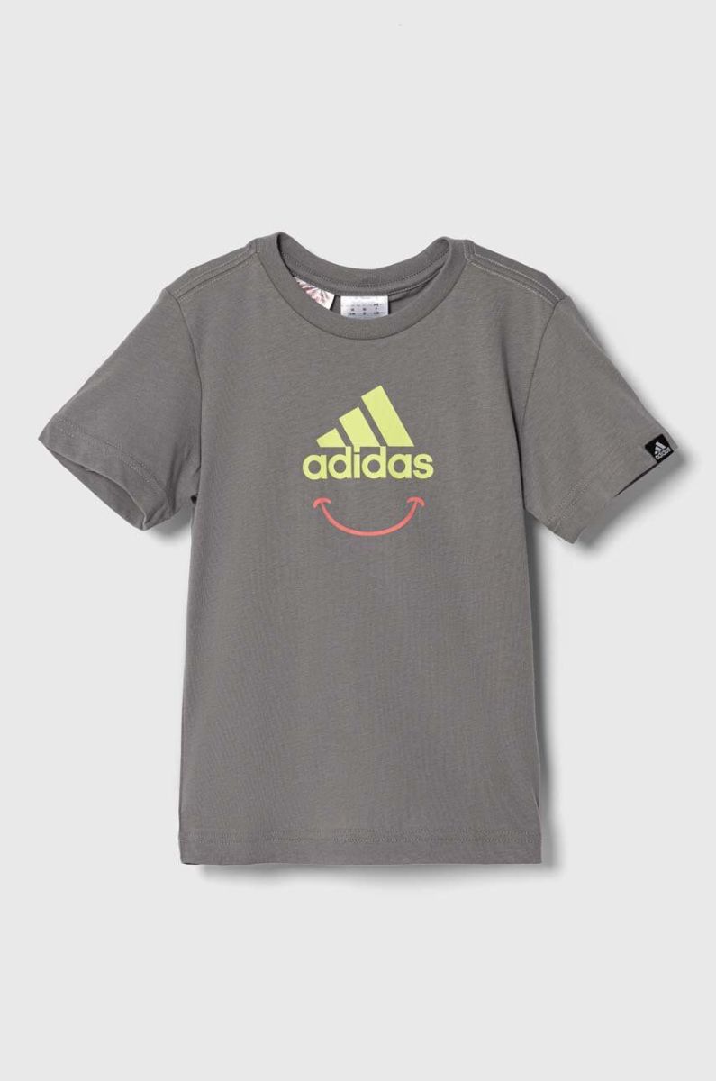 Дитяча бавовняна футболка adidas колір сірий з принтом