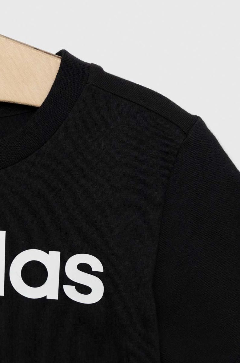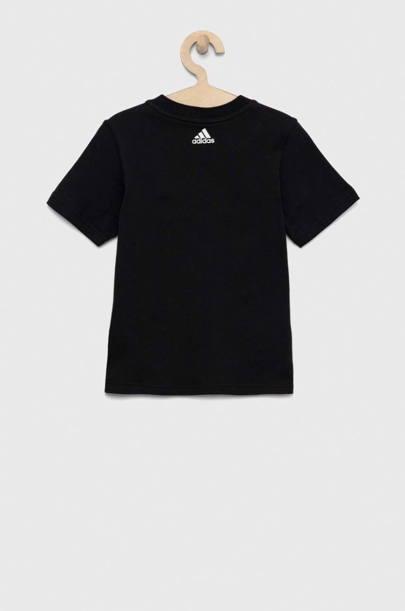 Дитяча бавовняна футболка adidas LK LIN CO колір чорний візерунок