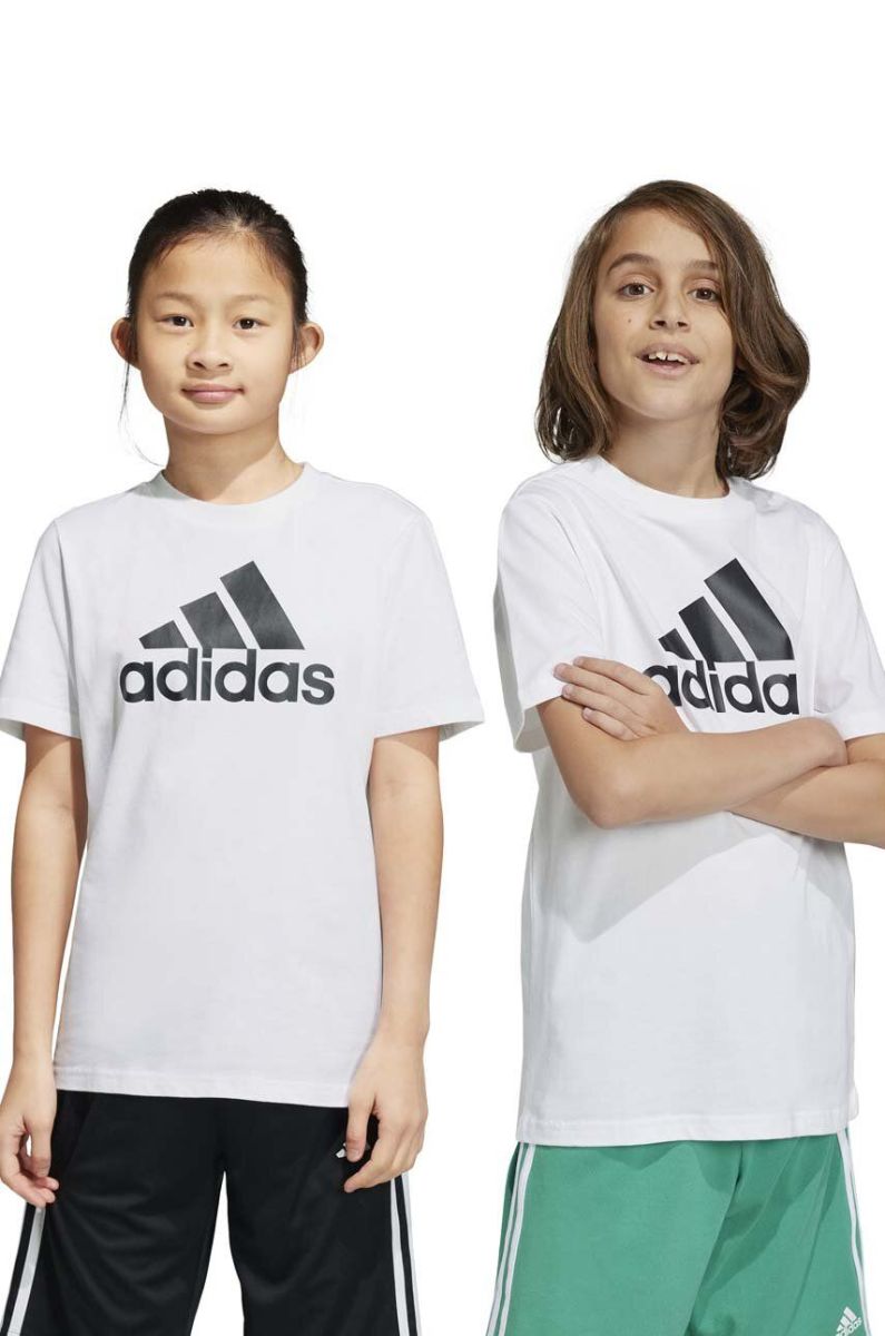 Дитяча бавовняна футболка adidas U BL колір білий з принтом