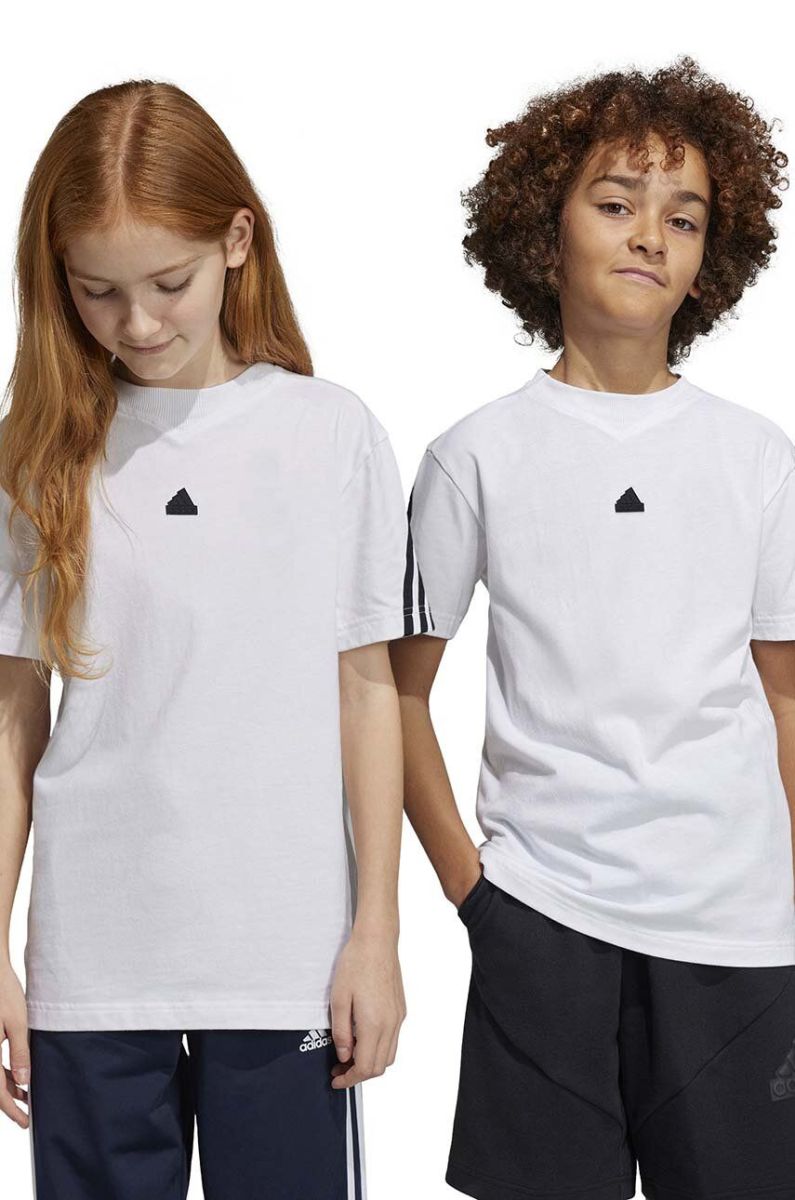 Дитяча бавовняна футболка adidas U FI 3S колір білий з аплікацією