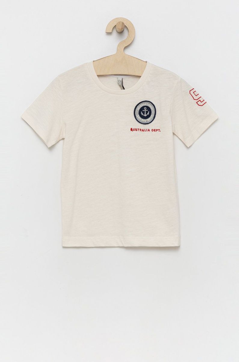 Дитяча бавовняна футболка Birba&Trybeyond колір бежевий з аплікацією (2348783)