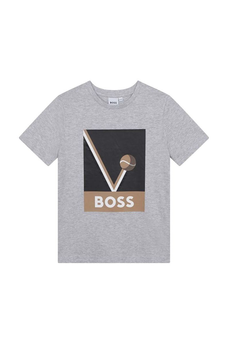 Дитяча бавовняна футболка BOSS колір сірий з принтом (3072097)