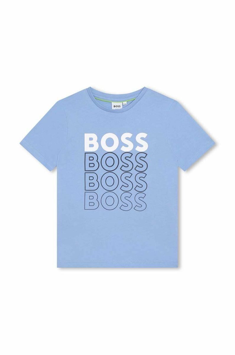 Дитяча бавовняна футболка BOSS з принтом колір блакитний (3058965)