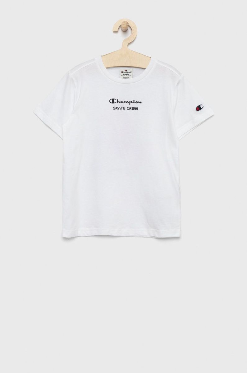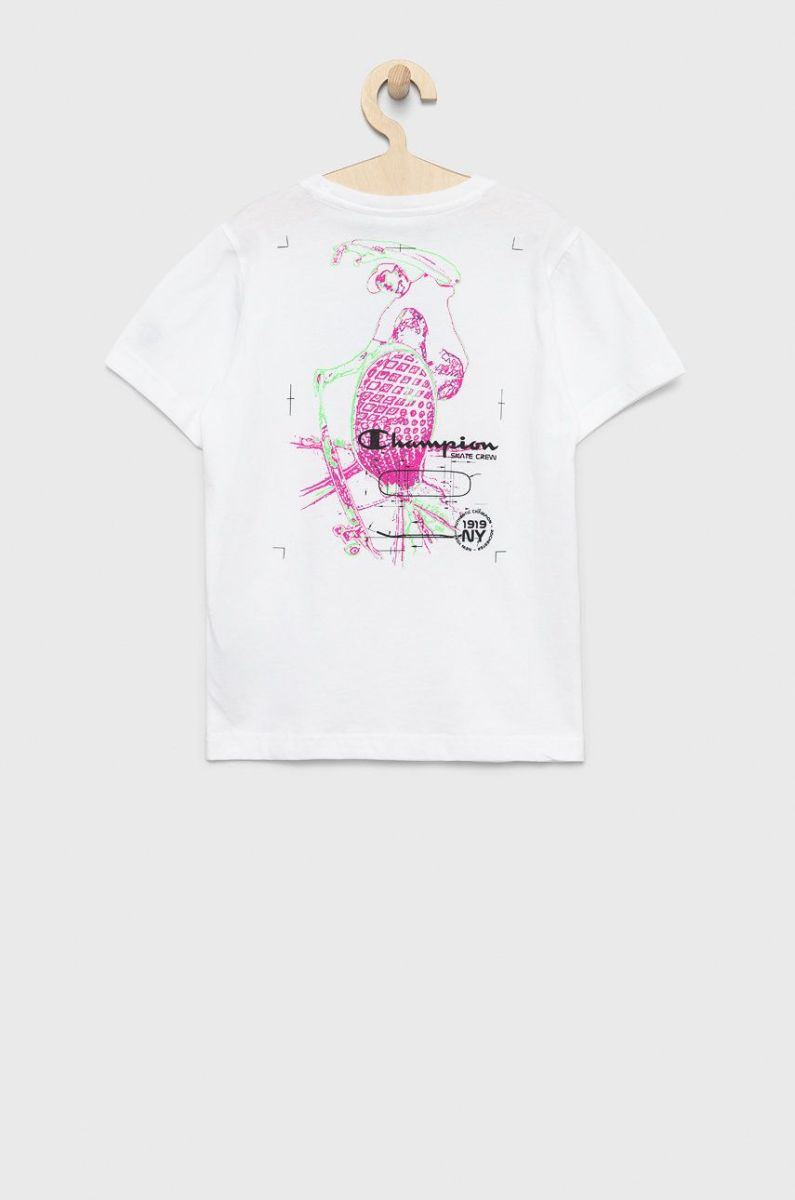 Дитяча бавовняна футболка Champion 305990 колір білий з принтом