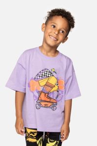 Дитяча бавовняна футболка Coccodrillo колір фіолетовий з принтом (3619126)