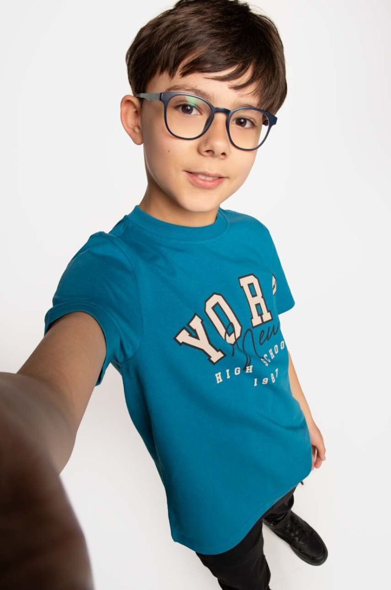Дитяча бавовняна футболка Coccodrillo з принтом колір блакитний (3495816)