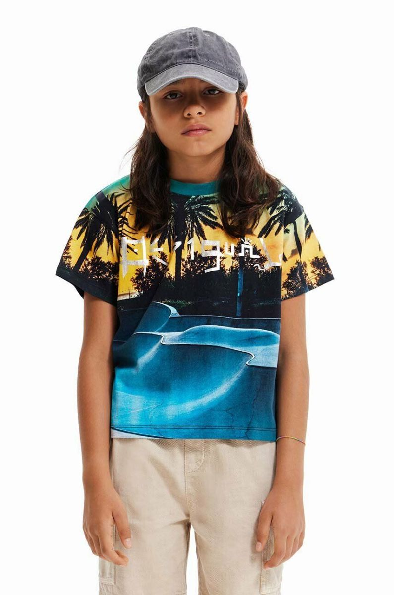 Дитяча бавовняна футболка Desigual з принтом колір барвистий