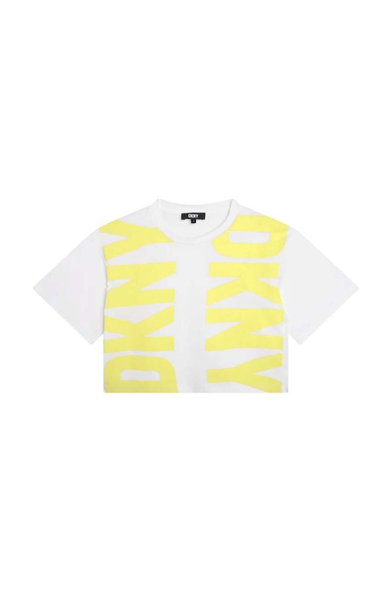 Дитяча бавовняна футболка Dkny колір жовтий