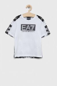 Дитяча бавовняна футболка EA7 Emporio Armani колір білий візерунок