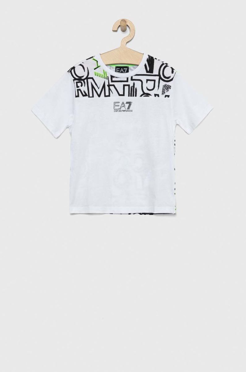 Дитяча бавовняна футболка EA7 Emporio Armani колір білий з принтом (2936373)