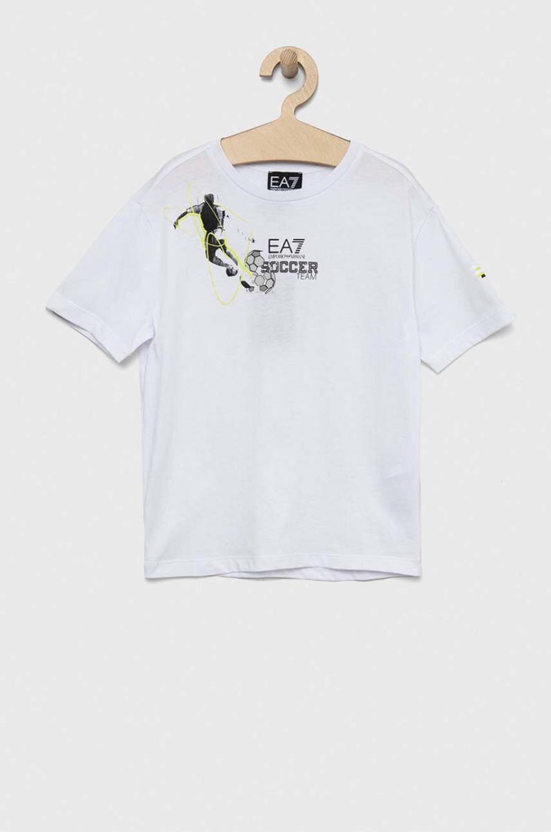 Дитяча бавовняна футболка EA7 Emporio Armani колір білий з принтом (3141294)