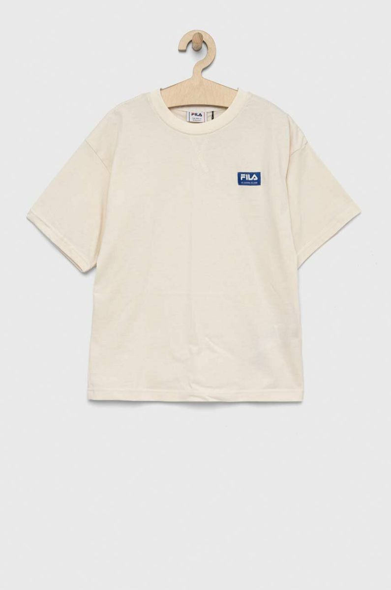 Дитяча бавовняна футболка Fila колір бежевий з аплікацією