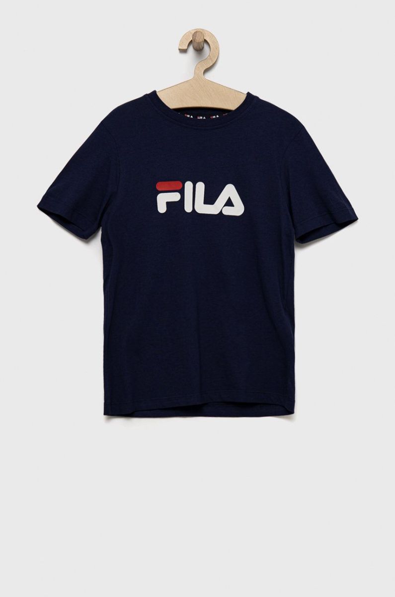 Дитяча бавовняна футболка Fila колір синій з принтом